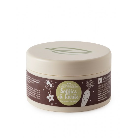 It contains fruit oligosaccharides, precious vitamins (such as the 0 km carrot extract), vanilla, cocoa and Shea butter.